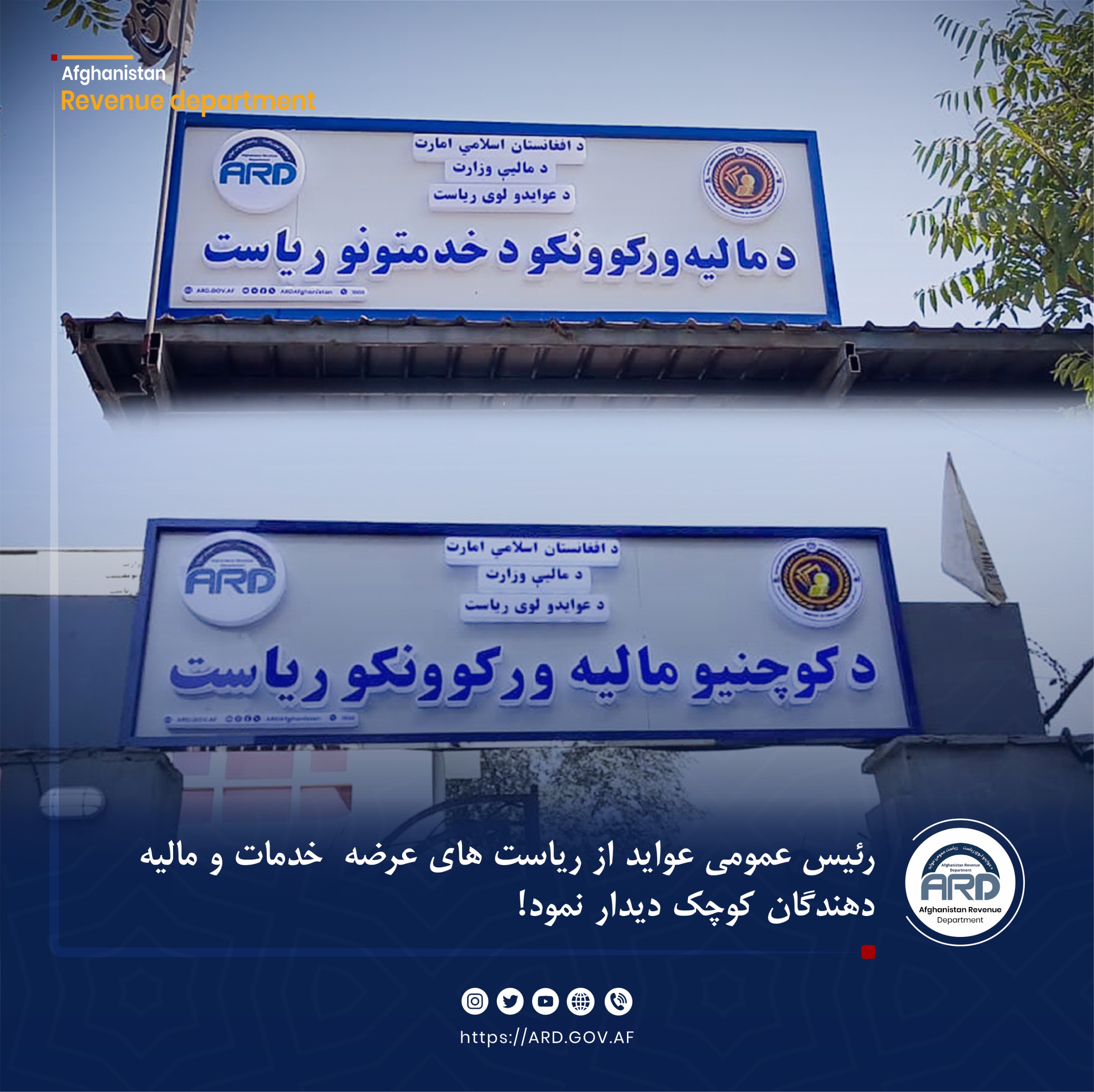 رئیس عمومی عواید، الحاج مولوی صفر محمد سحر، از ریاست های عرضه خدمات و مالیه ‌دهندگان کوچک دیدار نمود. در جریان این دیدار، با کارمندان ریاست های مربوطه نشست نمود، و فعالیت ‌های آنان را از نزدیک مشاهده کرد و مشکلات ‌شان را شنید.