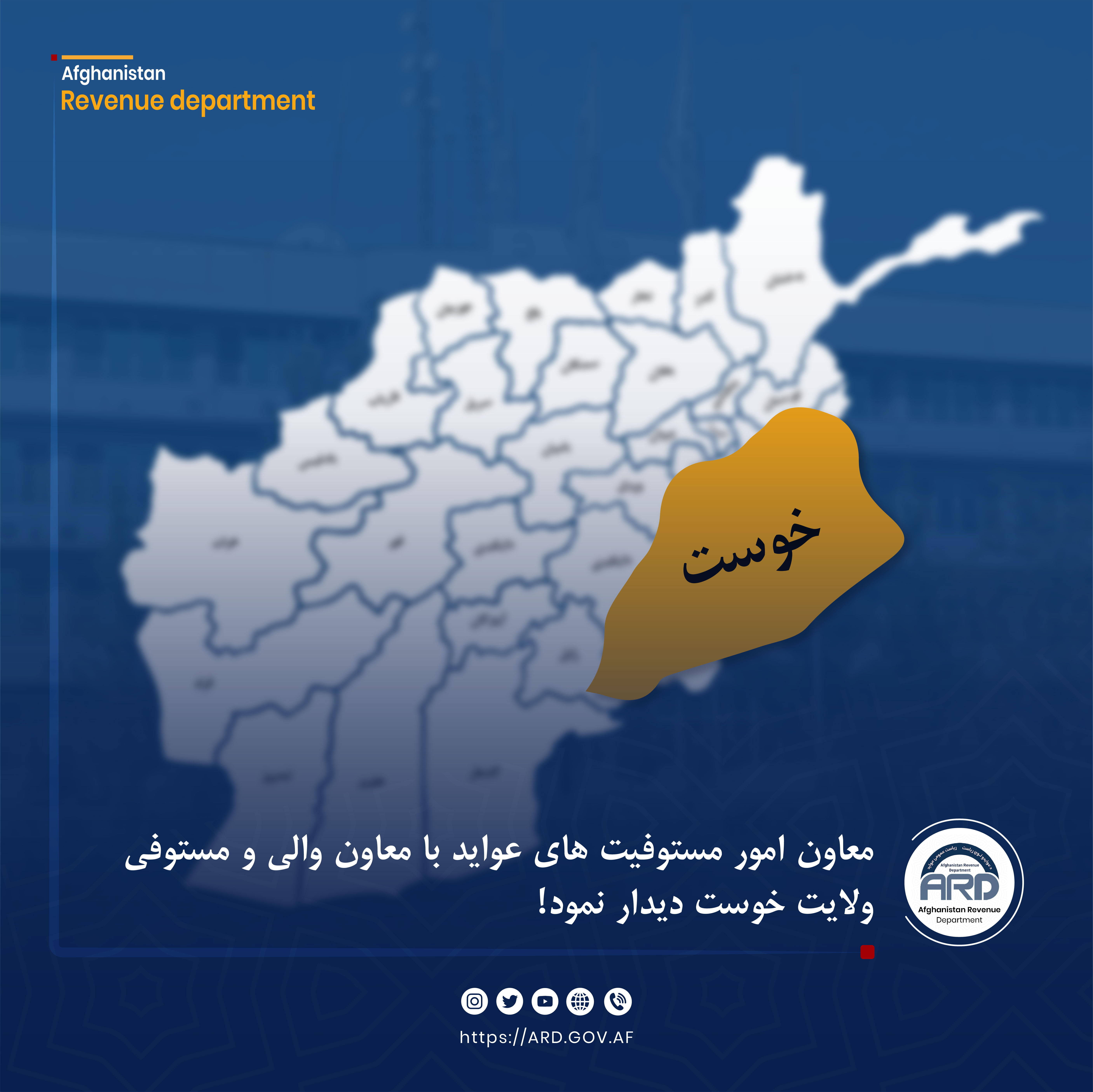 معاون امور مستوفیت های عواید، محترم نقیبالله عابد، در مقر ولایت خوست با معاون والی آن ولایت به هدف گسترش هماهنگی میان اداره مستوفیت و مقام ولایت دیدار کرد.