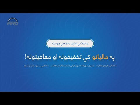 درنو هیوادوالو! راځئ د هیواد په ودانولو او جوړولو کي له خپلې وړې ونډي مالیه ورکړو او خپله ایماني او وجداني دنده ترسره کړو.